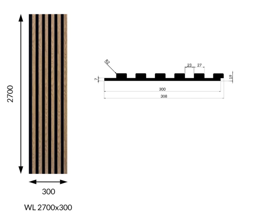 • WOODLINE ACOUSTIC PANEL 30x270cm Oak Light